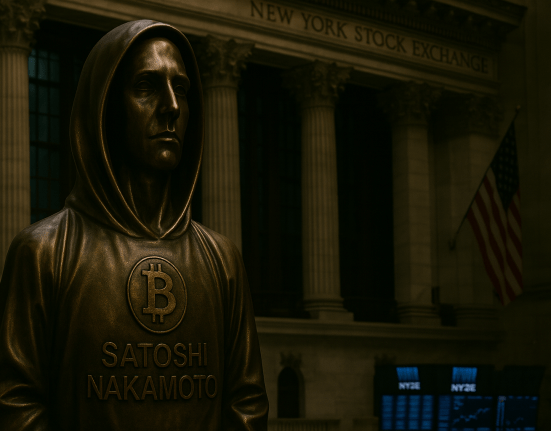 A bronze statue of Bitcoin’s mysterious creator, Satoshi Nakamoto, now stands in the heart of the New York Stock Exchange, underscoring how mainstream