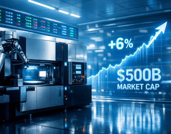 ASML stock (AMS: ASML) surged past a historic $500 billion market capitalization milestone on Thursday as a wave of positive catalysts swept through