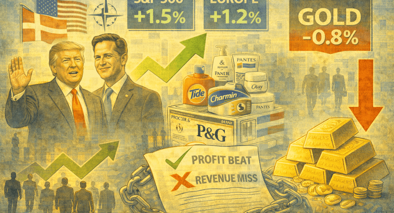 Global markets steadied on Thursday after President Donald Trump abruptly walked back his tariff threat linked to Greenland at Davos, sparking a relief rally in US and European equities, even as the details remain unclear. In corporate news, Procter & Gamble beat profit expectations but missed revenue targets, pointing to softer consumer demand and new